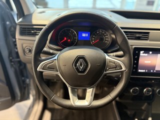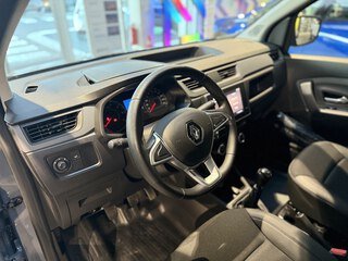 Zentralverriegelung, Radabdeckungen 15-Zoll, Fahrerairbag, ESP mit Berganfahrassistent, Tagfahrlicht, Schaltpunktanzeige, Heizung, Trennwand mit Fenster, Standardlackierung ohne Aufpreis, Lichtsensor, eCall Notrufsystem, Services, Reifendruckkontrolle, Beifahrereinzelsitz, Rußpartikelfilter, Standard Radio DAB+, Stoffpolsterung "Inti", Offenes Handschuhfach, Kunststoffboden im Fahrgastraum, Schiebetür rechts, Hecktüren 180 Grad, Fahrersitz höhenverstellbar, Wärmeschutzverglasung, Sicherheitsgurte höhenverstellbar, Lenkrad in Softapplikation, ABS, Ablagegalerie über den Vordersitzen, Sicherheitsgurt-Kontrollsystem, Notbremsassistent, Elektrische Fensterheber vorne mit Impulsfunktion auf der Fa, Stahlfelgen 15-Zoll, Außenspiegeln elektr. einstellbar, Kunststoffboden im Laderaum, 12-V-Steckdose, Mobilitäts-Set, Ohne RENAULT Schriftzug auf den Hecktüren, Connected Services
