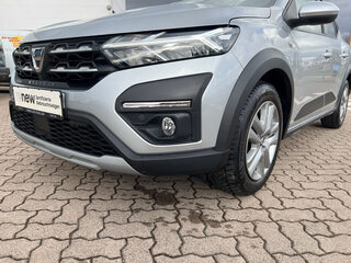 Zentralverriegelung mit Funk-Fernbedienung, Designradblende 5 Doppelspeichen Saria, Tempopilot mit Geschwindigkeitsbegrenzer, Kartenmaterial Deutschland Österreich Schweiz, LED-Abblendlicht mit Lichtautomatik, ESP (Electronisches Stabilitätsprogramm) und Berganfahrhilfe, Tagfahrlicht mit Y-förmiger LED-Lichtsignatur, Eco-Mode zur Reichweitenoptimierung, Einparkhilfe hinten akustisch, Aktives Notfall-Bremsassistenzsystem (AEBS), Kältemittel R1234yf, Außenspiegel und Türgriffe in Wagenfarbe Chrom-Kühlergrill, Lenkrad höhen- und tiefenverstellbar, Bordcomputer, E-Call: Automatischer Notruf, Reifendruckkontrollsystem, Nebelscheinwerfer, Media NAV: Multimediasystem mit 8-Zoll-Touchscreen und Navig, Dreipunkt-Sicherheitsgurte auf allen Sitzen, Lenkrad in Lederoptik, ABS (Anti-Blockier-System) und Notbremsassistent, Stoffpolsterung Stepway, Dachreling mit modularen Dachlängsträgern, Elektrische Fensterheber vorne mit Impulsschaltung auf der F, Fahrersitz höhenverstellbar mit Armlehne, Seitenairbags vorne und Windowbags für vorne und hinten, Manuelle Klimaanlage mit Pollenfilter, Regensensor, 16-Zoll-Stahlräder, Außenspiegel elektrisch einstell- und beheizbar, Stoßfänger in Wagenfarbe, Frontairbags für Fahrer und Beifahrer (Beifahrerairbag deakt, ISOFIX-Kindersitzbefestigung auf den hinteren Außenplätzen, Rücksitzlehne asymmetrisch umklappbar (1/3 zu 2/3), Automatische Türverriegelung nach dem Anfahren, Mobilitäts-Set (12-V-Kompressor und Reifendichtmittel), Drei Kopfstützen hinten höhenverstellbar, Standardlackierung ohne Aufpreis, TFT-Display Kombiinstrument