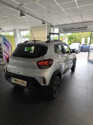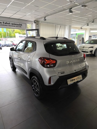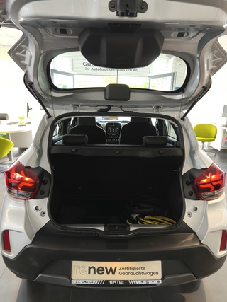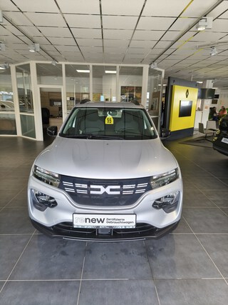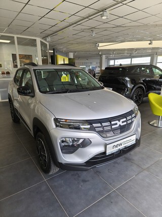 Zentralverriegelung mit Funk-Fernbedienung, LED-Tagfahrlicht, ESP (Electronisches Stabilitätsprogramm) und Berganfahrhilfe, Eco-Mode zur Reichweitenoptimierung, Dacia Plug & Radio, Standardlackierung ohne Aufpreis, Lichtautomatik, Elektrische Fensterheber vorne, Elektrische Fensterheber hinten, Bordcomputer mit 35-Zoll-TFT-Display, Notbremsassistent, E-Call: Automatischer Notruf, Indirektes Reifendruckkontrollsystem, Ladekabel Typ2/Typ2 (Mode 3), Ladekabel Schuko/Typ2 (Mode 2 10 A), Geschwindigkeitsbegrenzer, Sitzpolster Essential mit Seitenwangen in Lederoptik dunkel, ABS (Anti-Blockier-System), Seitenairbags vorne und Windowbags für vorne und hinten, Manuelle Klimaanlage mit Pollenfilter, Außenspiegel elektrisch einstellbar, 14'' Stahlräder, Frontairbags für Fahrer und Beifahrer (Beifahrerairbag deakt, ISOFIX-Kindersitzbefestigung auf den hinteren Außenplätzen, Rücksitzlehne umklappbar (1/1), Automatische Türverriegelung nach dem Anfahren, Mobilitäts-Set (12-V-Kompressor und Reifendichtmittel)