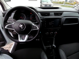 Einparkhilfe hinten, Multimedia-System Easy Link (Touchscreen 8"), Audio-/Radio-Fernbedienung am Lenkrad, Freisprecheinrichtung (Bluetooth) mit Sprachsteuerung, Radioempfang digital (DAB+), Smartphone Schnittstelle (Apple CarPlay & Android Auto), Touchscreen (8.0 Zoll), USB-Anschluss, Verkleidung im Lade-/FG-Raum: halbhoch, Ablagegalerie, Airbag Fahrerseite, Anti-Blockier-System (ABS), Antriebsart: Frontantrieb, Außenspiegel elektr. verstell- und heizbar, Bremsassistent, Eco Mode (Fahrmodusschalter), Einschaltautomatik für Fahrlicht, Elektron. Stabilitäts-Programm (ESP), Fahrassistenz-System: Berganfahr-Assistent (HSA), Fahrassistenz-System: Notbrems-Assistent, Fahrassistenz-System: Sicherheitssystem mit automatischem Notruf (ERA GLONASS / eCall), Fensterheber elektr. mit Impulsgeber links vorn, Getriebe 6-Gang, Heckflügeltüren ohne Verglasung, Karosserie/Aufbau: Kasten, Kombiinstrument analog, Kunststoffboden im Koffer-/Laderaum, Laderaumtrennwand mit Fenster, Lenksäule (Lenkrad) längsverstellbar, Lichtwarnsummer, Motor 1.5 Ltr. - 55 kW BLUE dCi Diesel FAP, Radstand 2812 mm, Reifen-Reparaturkit, Reifendruck-Kontrollsystem, Rußpartikelfilter, Schadstoffarm nach Abgasnorm Euro 6d, Schaltpunktanzeige, Schiebetür rechts ohne Fenster, Seitenschutzleisten, Servolenkung elektrisch, Sitz vorn links höhenverstellbar, Sitzbezug / Polsterung: Stoff, Start/Stop-Anlage, Steckdose (12V-Anschluß), Tagfahrlicht LED, Trommelbremse hinten, Türgriffe außen schwarz, Verzurrösen im Koffer-/Laderaumboden, Wärmeschutzverglasung, Zentralverriegelung mit Fernbedienung, Zentralverriegelung, Radabdeckungen 15-Zoll, Fahrerairbag, ESP mit Berganfahrassistent, Tagfahrlicht, Ohne RENAULT Schriftzug auf den Hecktüren, Heizung, Trennwand mit Fenster, Standardlackierung ohne Aufpreis, Lichtsensor, Connected Services, eCall Notrufsystem, Services, Reifendruckkontrolle, Beifahrereinzelsitz, Standard Radio DAB+, Stoffpolsterung "Inti", Offenes Handschuhfach, Kunststoffboden im Fahrgastraum, Schiebetür rechts, Hecktüren 180 Grad, Fahrersitz höhenverstellbar, Sicherheitsgurte höhenverstellbar, Lenkrad in Softapplikation, ABS, Ablagegalerie über den Vordersitzen, Sicherheitsgurt-Kontrollsystem, Notbremsassistent, Elektrische Fensterheber vorne mit Impulsfunktion auf der Fa, Stahlfelgen 15-Zoll, Außenspiegeln elektr. einstellbar, Kunststoffboden im Laderaum, 12-V-Steckdose, Mobilitäts-Set
