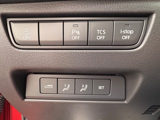 Driver Assistance-Paket####Innenspiegel rahmenlos####n/a####Matrix LED-Lichtsystem (ALH)####Adaptive Geschwindigkeitsregelanlage mit Stop&Go Funktion und Speed Limit Assist (MRCC), (CTS), (i-AAC)####Notbremsassistent für den hinteren Querverkehr (RCTB), (SCBS R)####Frontüberwachung (FCTA)####Automatisch abblendender Innen- und Außenspiegel####Convenience- & Sound-Paket (Diesel)####Heck- und Seitenscheiben hinten abgedunkelt####Qi: Induktives Laden (für kompatible Smartphones)####Elektrische Heckklappe, 360° Monitor mit See-Through View####LED Beleuchtung in Türen und in Mittelkonsole####230 Volt/150W-Steckdose (Rückseite Mittelkonsole)####Bose BassMatch Centerpoint 2 Soundsystem mit 12 Lautsprechern, Digitalradio-Tuner (DAB+)####12, 3 Zoll Farbdisplay (Touchscreenbedienung bei stehendem Fahrzeug für Apple CarPlay und Android Auto)####Ambientebeleuchtung am Dachhimmel####Aufmerksamkeitsassistent (DM)####Advanced Head-up Display####Driver Personalization System: Aufmerksamkeitsassistent (DM), Automatische Einstellung der idealen Sitzposition inklusive Lenkrad, Head-up Display und Außenspiegeln anhand Erkennung von Augenhöhe und Körpergröße; Entry/Exit Assist: Zurückstellen von Fahrer####Klimatisierungsautomatik, 2-Zonen####Freisprecheinrichtung mit Sprachsteuerung und Bluetooth® mit Audiostreaming####Berganfahrassistent (HLA); Bergabfahrassistent (HDC)####Konnektivitätsdienste über die MyMazda App verfügbar####City-Notbremsassistent (SCBS/SBS) mit Fußgänger-/ Radfahrererkennung und Kreuzungsfunktion####Mazda SD-Navigationssystem####Mi-Drive Fahrmoduswahl: Normal, Sport, Off-Road, i.V.m. original Anhängerkupplung: Towing (Zugbetrieb)####Geschwindigkeitsregelanlage mit Geschwindigkeitsbegrenzer (Cruisematic)####Licht- und Regensensor####Rücksitzlehnen: 40:20:40 geteilt klappbar####LogIn: Schlüsselloses Zugangssystem####Kinematic Posture Control (KPC), Fahrstabilitätsprogramm####Lichtsignatur vorne und hinten; Coming-/Leaving-Home Lichtfunktion####Wireless Apple CarPlay & Wireless Android Auto####Müdigkeitserkennung (DAA)####Lederlenkrad mit Lenkradheizung####Parksensoren hinten (akustisch)####Spurwechselassistent Plus (BSM) mit Lenkunterstützung (Blind Spot Assist) und Ausstiegswarnung bei von hinten herannahenden Verkehrsteilnehmern (BSM Exit Warning)####Verkehrszeichenerkennung (TSR)####Rückfahrkamera####Alarmanlage mit Innenraumüberwachung; Elektronische Parkbremse mit Auto Hold-Funktion####Spurhaltelassistent (ELK) mit Lenkunterstützung####Ladegutsicherung mit Gepäckraumtrennnetz####Elektrische Sitzverstellung Fahrer & Beifahrer, 10-fach####Zentralverriegelung mit automatischer Türverriegelung####Parksensoren vorne und Ausparkhilfe (RCTA)####Mobilitäts-Kit mit Kompressor und Reifendichtmittel####Fußraumbeleuchtung vorne und Handschuhfachbeleuchtung####Dynamische Stabilitätskontrolle (DSC) mit Traktionskontrollsystem (TCS)####Frontgrill Wabenmuster Piano Schwarz; Signature Wing, Badge am vorderen Kotflügel und angedeutete Auspuffblenden in Dark Chrome; Stoßfängeransatz vorne und hinten, Radhausverkleidung und Seitenschweller in Wagenfarbe####Airbags: Frontairbags; Beifahrersitzbelegungserkennung; Knieairbag Fahrerseite; Center-Airbag vorne; Kopf-/Schulter-Airbags, vorne und hinten; Seitenairbags, vorne und hinten außen####Lederschaltknauf####Notbrems-Warnblinkautomatik (ESS)####Dachheckspoiler####E-Call Notrufsystem####Elektrische Lenkradverstellung mit Memory-Funktion####Reifendruck-Kontrollsystem (TPMS)####i-Activ Display (12, 3 Zoll) in zentralen Rundinstrument####Stoßfänger hinten in Wagenfarbe mit Schwarz Akzent (mittig); Wagenfarbelackierung für Stoßfänger unten, Radhausverkleidung, Seitenschweller####Lenkradbedientasten für Audioquelle, Lautstärke, Geschwindigkeitsregelanlage und Freisprecheinrichtung####Mittelarmlehne hinten mit 2 Getränkehaltern####Kunstlederapplikationen innen####Enteiserfunktion für Scheibenwischer####Handschuhfachbeleuchtung####i-stop: Motor Stopp-/Start-System####Außenspiegel in Schwarz####Multi Commander- oder Sprachbedienung