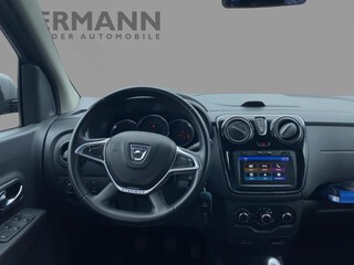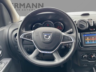 Tempopilot mit Geschwindigkeitsbegrenzer, Reifendruckkontrolle, Dacia Plug & Radio, Start- & Stoppsystem, Kofferraumbeleuchtung, Tagfahrlicht, Klapptische an den Rückenlehnen der Vordersitze, ESP + ASR + Berganfahrhilfe, Schaltpunktanzeige, Kältemittel, Außenspiegelgehäuse in Wagenfarbe, Beifahrerairbag, Lenkrad höhenverstellbar, Bordcomputer, Gepäckraumabdeckung herausnehmbar (Zwangsoption 7-Sitzer), Nebelscheinwerfer, Partikelfilter, Innenraumspiegel zur Beobachtung der 2. Sitzreihe, Beifahrerairbag deaktivierbar, Drei Kopfstützen hinten höhenverstellbar, Bedienungssatellit am Lenkrad, Seitenairbags vorne, Heckscheibenwischer, Heckscheibenheizung, Elektrische Fensterheber vorne mit Impulsschaltung auf der F, 5-Sitzer, Fahrersitz höhenverstellbar, Rücksitzbank und -lehne 2. Reihe asymmetrisch umklappbar (1/, Getönte Scheiben, Deckenleuchte hinten, Dreipunkt-Sicherheitsgurte vorne höhenverstellbar, Servolenkung hydraulisch, ABS mit EBV, Radzierblende Comfort, Außenspiegel elektrisch einstell- und beheizbar (bei Stepwa, 12-V-Steckdose hinten, Standard-Lackierung, Zentralverriegelung mit Funk-Fernbedienung, Stoffpolsterung Comfort, Bremsassistent, Dachreling in Silber, Gurtstraffer vorne, Elektronische Transponder-Wegfahrsperre, 15-Zoll-Stahlräder, Stoßfänger in Wagenfarbe, ISOFIX-Kindersitzbefestigung auf allen Plätzen der 2.Sitzrei, Manuelle Klimaanlage mit Pollenfilter, Fahrerairbag, Mittelarmlehne vorne, Mobilitäts-Set, Außenspiegelgehäuse lackiert