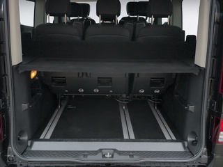 ohne Schriftzüge auf Heckklappe (Renault und Trafic), Klimaautomatik, Zentralverriegelung mit Fernbedienung, Schnittstelle für Motor- und Fahrzeuginformationen, Tempopilot mit Geschwindigkeitsbegrenzer, Reifendruckkontrolle, Chromverzierungen in der Armaturentafel, LED-Scheinwerfer, Tagfahrlicht für LED-Scheinwerfer, Schaltpunktanzeige, Einparkhilfe hinten, Spurhalte-Warner, Standardlackierung ohne Aufpreis, Kältemittel, Stoßfänger und Seitenschutzleisten in Wagenfarbe Türgriffe, Innenspiegel mit Abblendfunktion, Aktiver Notbremsassistent, eCall Notrufsystem, Connected Services, Rückfahrkamera, 7-Zoll Instrumententafel mit Farb-Display, Nebelscheinwerfer, Partikelfilter, Stoffpolsterung JAVA", Alkoholtest Vorrüstung, Sicherheitsgurt-Kontrollsystem, Verkehrszeichenerkennung, Müdigkeitswarner, Sitzbank für 3 Personen in der 2.Sitzreihe herausnehmbar, Multimediasystem EASY LINK, Lenkrad in Lederoptik, Heckscheibenwischer, Heckscheibenheizung, Elektrische Fenster vorne mit Impulsschaltung, Schiebetür rechts mit Schiebefenster, Sitzbank für 3 Personen in der 3. Sitzreihe herausnehm- um, Scheiben hinten rechts und links, Scheibe mit Schiebefenster vorne links, Heckklappe verglast, Leichtmetallräder "Avens" mit Diamanteffekt, Zusatzheizung Fahrgastraum separat, Armlehne an den hinteren Sitzplätzen, ABS mit elektronischem Bremskraftverteiler und Bremsassisten, LED-Beleuchtung im Fahrgastraum, Beifahrereinzelsitz "Komfort" 3-fach einstellbar Lendenwirb, Fahrersitz "Komfort" 3-fach einstellbar Lendenwirbelstütze, Seitenverkleidung im Fahrgastraum komplett, Stark getönte Heck- und Seitenscheiben, Keycard Handsfree, Seitenairbags und Windowbags vorne, Licht- und Regensensor, ESP mit ASR, Leichtmetallräder 17-Zoll, Außenspiegel elektrisch anklappbar, Gepäckraumabdeckung, Frontairbag für Fahrer und Beifahrer, Isofix-Kindersitzbefestigung, Easy-Life Schubfach, Mobilitäts-Set