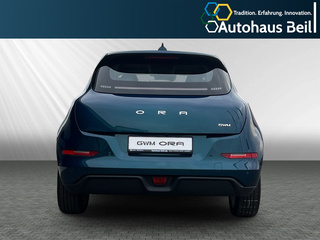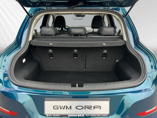 3. Bremsleuchte LED, 6 Lautsprecher, Adaptive Geschwindigkeitsregelanlage (ACC), Airbag Beifahrerseite abschaltbar, Airbag Fahrer-/Beifahrerseite, Anti-Blockier-System (ABS), Außenspiegel elektr. verstell-. heiz- und anklappbar, Automatisches Antibeschlag-System, Blinkleuchten LED in Außenspiegel integriert, Bluetooth-Schnittstelle mit Freisprecheinrichtung integriert, Bremsenergierückgewinnung (Rekuperationssystem), Coming-Home-Lichtfunktion, Dual-Bildschirm (10.25" Instrumentenanzeige + 10.25" Infotainment Touchscreen), Einparkhilfe hinten, Elektr. Bremskraftverteilung (EBD), Elektromotor 126 kW (cont. 60 kW), Elektron. Stabilitätskontrolle (ESC), Erste Hilfe-Kasten / Verbandkasten, Fahrassistenz-System: 360-Grad-Rundumschutz (Surround-Kamerasystem), Fahrassistenz-System: Abbiege-Assistent (vorn), Fahrassistenz-System: Auffahrwarnsystem (Rear Collision Warning. RCW), Fahrassistenz-System: Aufmerksamkeits-Assistent (Müdigkeitserkennungs-Sensor), Fahrassistenz-System: Ausstiegswarnung (Door Open Warning. DOW), Fahrassistenz-System: Ausweich-Assistent, Fahrassistenz-System: Autonomer Notbrems-Assistent mit Frontkollisionswarnung und Fußgänger- und Fahrraderkennung, Fahrassistenz-System: Berganfahr-Assistent, Fahrassistenz-System: Fahrprofilauswahl (Fahrmodi), Fahrassistenz-System: Fernlichtassistent, Fahrassistenz-System: Kurven-Assistent (ATC), Fahrassistenz-System: Notlenk-Assistent, Fahrassistenz-System: Querverkehrs-Assistent Heck mit Bremsfunktion (Rear Cross Traffic Alert with Brake. RCTA-B), Fahrassistenz-System: Spurverlassenswarnung (LDW), Fahrassistenz-System: Spurwechselassistent (LCA), Fahrassistenz-System: Stauassistent (TJA), Fahrassistenz-System: Totwinkel-Assistent (BSD), Fahrassistenz-System: Verkehrszeichenerkennung (TSR), Fensterheber elektrisch vorn + hinten, Gepäckraumabdeckung / Rollo, Getriebe für Elektrofahrzeug, Heckscheibe heizbar, HV-Batterie 63 kWh, Induktionsladeschale für Smartphone, Innenspiegel mit Abblendautomatik, Isofix-Aufnahmen für Kindersitz an Rücksitz, Karosserie: 5-türig, Kindersicherung, Klimaautomatik, Kopfstützen vorn und hinten verstellbar, Kühlergrill. Aktive Luftklappen, Lackierung Solid, Ladekabel mit Typ 2-Stecker (Mode 2), Lenkrad (Kunstleder), Lenkrad heizbar, Lenksäule (Lenkrad) höhen-/längsverstellbar, Licht- und Regensensor, LM-Felgen, Mittelarmlehne hinten mit Getränkehalter, Mittelarmlehne vorn mit Staufach, Navigationssystem, Nebelschlussleuchte, Notrufsystem (eCall), One Pedal Drive (elektronisches Gaspedal), Parkbremse elektrisch mit Auto-Hold-Funktion, Radioempfang digital (DAB+), Reifen-Reparaturset, Reifendruck-Kontrollsystem, Rücksitzlehne geteilt/klappbar (60:40), Scheibenwaschdüsen heizbar, Scheinwerfer LED, Leuchtweitenregelung automatisch, Scheinwerfer mit Begrüßungsfunktion (Welcome Light), Schließ-/Startsystem Smart-Key, Seitenairbag vorn, Seitenairbag vorn mitte (Center-Airbag), Service-System: Gesichtserkennung, Sitz vorn links elektr. verstellbar (6-fach), Sitz vorn rechts elektr. verstellbar (4-fach), Sitzheizung vorn, Sonnenblenden mit Spiegel, Sprachassistent Hello Ora, Steckdose (12V-Anschluß) vorn, Tagfahrlicht, Traktionskontrolle (TCS), Türentriegelung automatisch (bei Unfall), Türgriffe außen Wagenfarbe, USB-Anschlüsse vorn und hinten, Verglasung hinten abgedunkelt (Privacy Glass), Vorhangairbag vorn und hinten, Warnanlage für Sicherheitsgurte