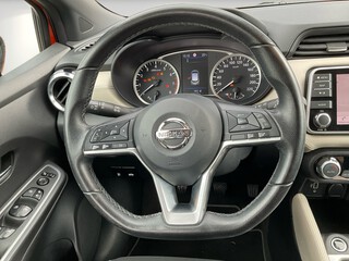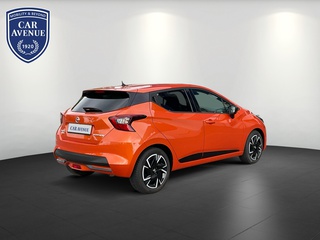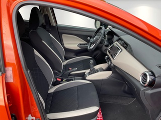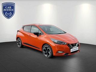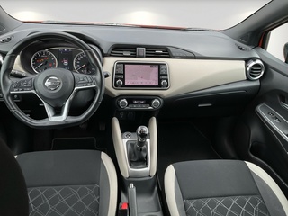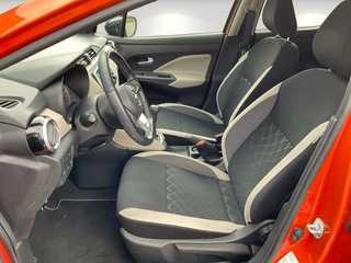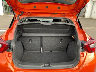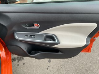 3. Bremsleuchte, 4 Lautsprecher, Airbag Beifahrerseite abschaltbar, Airbag Fahrer-/Beifahrerseite und Seitenairbag vorn, Anti-Blockier-System (ABS), Elektr. Bremskraftverteilung (EBD), Audio-Paket, 2 Lautsprecher, Audiosystem: Radio mit USB / iPod-Anschluss und Bluetooth-Schnittstelle, Radioempfang digital (DAB), Audiobedienung am Lenkrad, Audiosystem: Radio mit CD-Player inkl. MP3-Wiedergabefunktion, Außenspiegel elektr. anklappbar, Außenspiegel elektr. verstellbar, Außenspiegel heizbar, Außenspiegel Wagenfarbe, Außentemperaturanzeige, Automatische Fahrlichtschaltung, AUX-IN-Anschluss (AUX-IN), Blinkleuchten LED in Außenspiegel integriert, Bluetooth-Schnittstelle, Bordcomputer, Comfort-Paket, Einparkhilfe hinten, Fensterheber elektrisch hinten, Innenraumfilter: Pollenfilter, Klimaautomatik, Dachantenne, Dachspoiler, Drehzahlmesser, Elektron. Stabilitäts-Programm (ESP), Fahrassistenz-System: Berganfahr-Assistent, Fahrassistenz-System: Notbrems-Assistent, Fahrassistenz-System: Verkehrszeichenerkennung, Fensterheber elektrisch vorn, Frontscheibe Verbundglas, Gepäckraumabdeckung / Rollo, Geschwindigkeits-Begrenzeranlage, Geschwindigkeits-Regelanlage (Tempomat), Getränkehalter hinten, Getränkehalter vorn, , Gurtstraffer, Heckscheibe heizbar, Heckscheibenwischer, Isofix-Aufnahmen für Kindersitz, Karosserie: 5-türig, Kopf-Airbag-System, Kopfstützen vorn und hinten verstellbar, Kopfstützen vorn, Lenkrad (Sport/Leder), Lenksäule (Lenkrad) höhen-/längsverstellbar, Leseleuchte vorn, Leuchtweitenregelung automatisch, LM-Felgen, Motor 1.0 Ltr. - 68 kW 12V KAT, Nebelscheinwerfer, Nebelschlussleuchte, Reifen-Reparaturset, Reifendruck-Kontrollsystem, Rückfahrkamera, Rücksitzbank umklappbar, Safety-Paket, Bremsassistent (Nissan Brake-Assist), Fahrassistenz-System: Autonomer Notbrems-Assistent, Fahrassistenz-System: Fernlichtassistent, Fahrassistenz-System: Fußgängererkennung, Fahrassistenz-System: Spurhalteassistent, Schadstoffarm nach Abgasnorm Euro 6d, Schalt-/Wählhebelgriff Leder, Scheibenwischer mit Intervallschaltung, Scheibenwischer mit Regensensor, Schließ-/Startsystem intelligent key, Seitenschutzleisten, Sitz vorn links höhenverstellbar, Sitzbezug / Polsterung: Stoff, Sitzheizung vorn, Sonnenblenden mit Spiegel, Start-Stop-Knopf, Start/Stop-Anlage, Steckdose (12V-Anschluß), Stylingelement Stoßfänger hinten unten, Stylingelement Stoßfänger vorn unten, Tagfahrlicht LED, TFT-Farbdisplay (5.0 Zoll), Touchscreen-Farbdisplay (7.0 Zoll) in Mittelkonsole, Türgriffe innen verchromt, Türverkleidung Kunstleder, Türverkleidung mit Stoffeinsatz, USB-Schnittstelle, Verglasung hinten abgedunkelt, Wegfahrsperre (elektronisch), Zentralverriegelung mit Fernbedienung