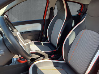Dekor-/Zierstreifen Dach/Türen. Full Vibes, Ladekabel mit Schukostecker (Mode 2), Sonderlackierung Valencia-Orange Metallic, 2 Hochtöner, Ablagefach Türverkleidung hinten, Airbag Beifahrerseite abschaltbar, Airbag Fahrer-/Beifahrerseite, Anti-Blockier-System (ABS), Antischlupfregelung (ASR), Außenspiegel elektr. verstell- und heizbar, Außenspiegel Wagenfarbe, Bordcomputer, Bremsassistent, Einparkhilfe hinten inkl. Rückfahrkamera, Einstiegsleisten mit Modell-Schriftzug, Elektromotor 60 kW (cont. 31 kW), Elektron. Stabilitäts-Programm (ESP), Fahrassistenz-System: Berganfahr-Assistent (HSA), Fensterheber elektrisch vorn, Geschwindigkeits-Begrenzeranlage, Geschwindigkeits-Regelanlage (Tempomat), Getriebe für Elektrofahrzeug, Gurtstraffer, Handschuhfach mit Klappe, Heckspoiler, Isofix-Aufnahmen für Kindersitz, Karosserie: 5-türig, Klimaautomatik, Kofferraumabdeckung, Kopf-Airbag-System vorn, Kopfstützen hinten, Kopfstützen integriert, Ladekabel mit Typ2/Typ2 (Mode 3), Lenkrad (Leder) + Schalt-/Wählhebelgriff Leder, Lenksäule (Lenkrad) höhenverstellbar, Licht- und Regensensor, LM-Felgen, Look-Paket Orange (innen), Mittelkonsole mit Ablagefach, Modellpflege, Multimedia-System Easy Link mit Navigationssystem (Touchscreen 7"), Audio-/Radio-Fernbedienung am Lenkrad, Freisprecheinrichtung (Bluetooth) mit Sprachsteuerung, Radioempfang digital (DAB+), Touchscreen (7.0 Zoll), USB-Anschluss inkl. AUX-IN-Anschluss (Plug & Music), Reifen-Reparaturkit, Reifendruck-Kontrollsystem, Rücksitzlehne geteilt/klappbar, Seitenairbag vorn, Seitenschutzleisten Wagenfarbe, Servolenkung, Servolenkung geschwindigkeitsabhängig, Sitz vorn links höhenverstellbar, Sitz vorn rechts umklappbar, Sitzbezug / Polsterung: Kunstleder / Stoff, Sitzheizung vorn, Tagfahrlicht LED, Türgriffe außen Wagenfarbe, Verglasung hinten stark abgedunkelt, Vorrüstung Diebstahl-Warnanlage / Alarmanlage, Zentralverriegelung mit Fernbedienung, Kopf- und Thoraxairbags, Zentralverriegelung, Tempopilot mit Geschwindigkeitsbegrenzer, FDIU1, ISOFIX-Befestigung Rücksitzbank, Fahrerairbag, Ladekabel Typ2/Typ2 (Mode3), Kühlergrill mit Zierelementen in Chrom, 16-Zoll-Leichtmetallräder Yeti, Standardlackierung ohne Aufpreis, Kabeltasche, Außenspiegel in Wagenfarbe, Beifahrerairbag, Rücksitzlehne mit verstellbarem Neigungswinkel, Lenkrad höhenverstellbar, Innenlook-Paket in Orange, Smartphone-Integration via Android Auto, AIVC, Stoff- Kunstlederpolsterung in Schwarz mit Akzenten in Orang, EASY LINK mit 7-Zoll Touchscreen, Türgriffe in Wagenfarbe lackiert, Striping 3 Lines Vibes, Radiosatellit am Lenkrad, Rücksitzlehne geteilt umklappbar, Sitzheizung für Vordersitze, Lenkrad aus Leder, ABS, i-Size Befestigung Rücksitze, Seitenschutzleisten in Wagenfarbe mit Zierleiste, Fensterheber vorne elektrisch mit Impulsschaltung, Fahrersitz höhenverstellbar + Beifahrersitz one touch, ASR mit ESP, 16-Zoll-Leichtmetallräder, Außenspiegel elektrisch einstell- & beheizbar, Badges/Sticker Twingo Electric Vibes, Flexicase: geschlossenes Handschuhfach, Flexicase: offenes Ablagefach zwischen den Vordersitzen inkl, Mobilitäts-Set 12-V-Kompressor und Reifendichtmittel, CHARAP, Geräuschsimulator Z.E. Voice (Akustisches Warnsystem - AVAS)