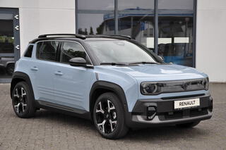 Zweifarblackierung, Einparkhilfe vorne, hinten und seitlich, Schwarzes Dach, Winter Komfort-Paket, Dachlinie in Silber, Elektrische Heckklappe mit Fußsensor, Batterie, V2L-Adapter zum Anschluss von externen Elektrogeräten, Geräuschsimulator, Fernlichtassistent, Zentralverriegelung mit Fernbedienung, 18-Zoll-Leichtmetallräder, Elektrische Fensterheber vorne mit Impulsschaltung und Klemm, Elektrische Fensterheber hinten mit Impulsschaltung und Klem, Heckscheibe beheizbar, Beleuchtung in den Türen vorne, Fahrer- und Beifahrerairbag, Stoffpolsterung, 100% recycelter gesteppter Jeans"-Stoff mit Kupfernähten /, 3 Kopfstützen in der 2. Sitzreihe, Fahrer und Beifahrersitz höhenverstellbar, Elektronische Bremskraftverteilung, Intelligenter Adaptiver Tempopilot, Dachreling, Seitenairbags und Windowbags vorne, 3-Punkt-Sicherheitsgurte auf allen Plätzen der Rücksitzbank, LED-Beleuchtung vorne und hinten, ISOFIX-i-Size-Kindersitzbefestigung, Mittelkonsole mit Staufach und Mittelarmlehne, Beifahrerairbag deaktivierbar, Induktive Smartphoneladefläche, Sicherheitsabstand-Warner, Schaltwippen am Lenkrad zur Steuerung der Rekuperation, LED-Tagfahrlicht, Elektronisches Stabilitätsprogramm (ESP) mit Berganfahrhilfe, 18-Zoll Leichtmetallräder "Sixties" schwarz glanzgedreht, Reifenreparaturset, Außenspiegel in Schwarz, Fahrzeugortungssystem, LED-Rückleuchten, eCall-Notrufsystem, Connected Services, Rückfahrkamera, Indirektes Reifendruckkontrollsystem, Einparkhilfe hinten, Außenspiegel einstell- beheiz- und anklappbar, MULTI-SENSE mit Ambientebeleuchtung zur individuellen Einste, Digitales Tachodisplay 10-Zoll, Bremsscheibenschutz, Klimaautomatik, Elektronische Parkbremse mit Autohold, Einfarblackierung, Lenkrad in Lederoptik, Gurtwarner, Licht- und Regensensor, Wärmepumpe, Spurhalteassistent, AC 11kW On-board Charger (DC 100kW), Haifischantenne, Ladekabel Mode 3, Batterie-Vorkonditionierung, Kabellose Smartphone-Integration via Android Auto(TM) und Ap, Keycard Handsfree, Rahmenloser Innenspiegel automatisch abblendend, Verkehrszeichenerkennung mit Geschwindigkeitswarner, Dach in Wagenfarbe, Müdigkeitswarner, Motorhaube in Wagenfarbe, Notbremsassistent mit Fußgängererkennung und Kreuzungsassist, Getönte Seitenscheiben hinten stark getönte Heckscheibe, Virtual Assistant Reno, OpenR link Infotainmentsystem 10-Zoll mit Navi. und integrie, Standardlackierung ohne Aufpreis