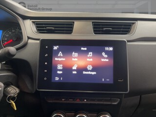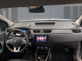 Airbag Beifahrerseite abschaltbar, Handschuhfach, Handschuhfach beleuchtet, Heckflügeltüren mit Verglasung, Heckscheibe heizbar, Heckscheibenwischer, LED-Beleuchtung im Laderaum, Mittelarmlehne für Fahrersitz, Multimedia-System Easy Link mit Navigationssystem (Touchscreen 8"), Audio-/Radio-Fernbedienung am Lenkrad, Freisprecheinrichtung (Bluetooth) mit Sprachsteuerung, Radioempfang digital (DAB+), Smartphone Schnittstelle (Apple CarPlay & Android Auto), Touchscreen (8.0 Zoll), USB-Anschluss, Raucher-Paket, Reserverad in Fahrbereifung, Schiebetür rechts mit Ausstellfenster, Triebwerkunterschutz, Verkleidung im Lade-/FG-Raum: halbhoch, Zentralverriegelung, Radabdeckungen 15-Zoll, Fahrerairbag, ESP mit Berganfahrassistent, Tagfahrlicht, Schaltpunktanzeige, Heizung, Trennwand mit Fenster, Standardlackierung ohne Aufpreis, Lichtsensor, eCall Notrufsystem, Services, Reifendruckkontrolle, Beifahrereinzelsitz, Rußpartikelfilter, Standard Radio DAB+, Stoffpolsterung "Inti", Offenes Handschuhfach, Kunststoffboden im Fahrgastraum, Schiebetür rechts, Hecktüren 180 Grad, Fahrersitz höhenverstellbar, Wärmeschutzverglasung, Sicherheitsgurte höhenverstellbar, Lenkrad in Softapplikation, ABS, Ablagegalerie über den Vordersitzen, Sicherheitsgurt-Kontrollsystem, Notbremsassistent, Elektrische Fensterheber vorne mit Impulsfunktion auf der Fa, Stahlfelgen 15-Zoll, Außenspiegeln elektr. einstellbar, Kunststoffboden im Laderaum, 12-V-Steckdose, Mobilitäts-Set, Ohne RENAULT Schriftzug auf den Hecktüren, Connected Services