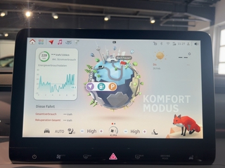 Adaptive Geschwindigkeitsregelanlage (ACC) mit Stop&Go-Funktion, Airbag Fahrer-/Beifahrerseite, Akustischer Fußgängerschutz (Soundmodul), Alarmanlage, Anhänger-Stabilisierungs-Programm (TSA), Anti-Blockier-System (ABS), Antriebsart: Heckantrieb, Anzeigeinstrumente Full LCD HD (9.2" Farbdisplay), Audio-Navigationssystem, Außenspiegel elektr. verstell-. heiz- und anklappbar mit Spiegelabsenkung. Memory, Außenspiegel mit Abblendautomatik, Außenspiegel mit autom. Absenkfunktion, Außenspiegel mit Umfeldleuchte und Projektionsfunktion, Auto-Hold-Funktion, Autom. Begleitfunktion der Beleuchtung (Follow me home), Blinkleuchten mit Lauflicht vorn und hinten, Bluetooth-Schnittstelle, Bremsassistent, Bremsenergierückgewinnung (Rekuperationssystem), Brillenfach, Dachreling, Einparkhilfe hinten, Einparkhilfe vorn, Einparkhilfe vorn und hinten. 12 Parksensoren, Einstiegshilfe Easy-Entry, Einstiegsleisten (Edelstahl) beleuchtet, Elektromotor 200 kW (cont. 75 kW), Elektromotor 200 kW HA, Elektron. Stabilitäts- und Traktionskontrolle, elektronisches Gaspedal, Erste Hilfe-Kasten / Verbandkasten, Fahrassistenz-System: Adaptiver Fernlichtassistent, Fahrassistenz-System: aktiver Spurhalteassistent (Lane Departure Prevention. LDP), Fahrassistenz-System: Aufmerksamkeits-Assistent (DMS), Fahrassistenz-System: Ausweich-Assistent (EMA), Fahrassistenz-System: Autobahnassistent (HWA), Fahrassistenz-System: Bergabfahrkontrolle (HDC), Fahrassistenz-System: Berganfahr-Assistent, Fahrassistenz-System: Fahrer-Erkennung (Driver Monitoring System), Fahrassistenz-System: Frontkollisionswarnung (FCM), Fahrassistenz-System: Intelligente Geschwindigkeitsanpassung (ISA), Fahrassistenz-System: Kollisionswarnsystem hinten (RCM), Fahrassistenz-System: Notfall-Spurhalteassistent (Emergency Lane Keeping. ELK), Fahrassistenz-System: Pannenmanagement (bCall), Fahrassistenz-System: Park-Notbremse (PEB), Fahrassistenz-System: Parkassistenzsystem (Park Assist), Fahrassistenz-System: Pilot Assist, Fahrassistenz-System: Querverkehrs-Assistent Heck (RCTA), Fahrassistenz-System: Querverkehrs-Assistent vorn (FCTA), Fahrassistenz-System: Spurhalteassistent, Fahrassistenz-System: Spurverlassenswarnung (LDW), Fahrassistenz-System: Spurwechselassistent (LCA), Fahrassistenz-System: Stauassistent (TJA), Fahrassistenz-System: Totwinkel-Assistent (BSD), Fahrassistenz-System: Verkehrszeichenerkennung (TSR), Fahrzeugortungssystem, Frontstaufach / Frunk (Kofferraum. vorn), Gepäckraumabdeckung / Rollo, Getränkehalter, Getränkehalter in Mittelkonsole, Getriebe für Elektrofahrzeug, Head-up-Display, Heckklappe/-Deckel elektr. betätigt (öffnen + schliessen. sensorgesteuert), Heckleuchten LED, Heckscheibe abgedunkelt (Privacy Glass), HV-Batterie 66 kWh brutto / 62 kWh netto, Induktionsladeschale für Smartphone, Infotainment-Center 12.8 Zoll Display (Touchscreen), Infotainment-System: Remote Online Services, Innenausstattung: Interieur Touch, Innenausstattung: Premium, Innenspiegel mit Abblendautomatik, Instrumententafel Leder-Optik, Intelligenter Sprachassistent, Isofix-Aufnahmen für Kindersitz, Isofix-Aufnahmen für Kindersitz an Rücksitz, Kamerasystem 360 Grad, Karosserie: 5-türig, Keyless-Entry, Keyless-Start, Klimaautomatik 2-Zonen, Komfort-Fahrwerk, Kopf-Airbag-System (Windowbag), Kopfstützen verstellbar, Kühlergrill. Aktive Luftklappen, Lenkrad (Leder) mit Multifunktion, Lenksäule (Lenkrad) verstellbar, Leuchtweitenregelung automatisch, LM-Felgen 8x19 (Rotor), Luftdüsen hinten, Luftqualitäts-Überwachungssystem (AQS), Matrix-LED-Scheinwerfer, Memoryfunktion für Sitz vorn links, Metallic-Lackierung, Mittelarmlehne hinten, Mittelarmlehne hinten klappbar mit Durchlademöglichkeit, Mittelarmlehne hinten mit Getränkehalter, Mittelarmlehne vorn klappbar, Mittelkonsole mit Kühlfunktion, Notbrems-Warnblinkautomatik, Notrufsystem (eCall), Panorama-Glasdach, Parkbremse elektrisch, Radioempfang digital (DAB), Radstand Standard, Regensensor, Reifen-Reparaturkit (Kompressor), Reifendruck-Kontrollsystem, Rücksitzbank geteilt/klappbar (60:40), Rücksitzbank verschiebbar, Rücksitzlehnen neigungsverstellbar, Seitenairbag, Seitenairbag vorn mitte (Center-Airbag), Seitenscheiben hinten und Heckscheibe dunkel getönt (Privacy Glass), Servolenkung, Sicherheitsgurte vorn höhenverstellbar, Sitzbezug / Polsterung: Duo-Leder, Sitze vorn elektr. verstellbar (6-fach) mit Lendenwirbelstütze, Sitzheizung, Smart APP (Zugang und Steuerung), Sonnenschutz Glasdach, Sound-System beats, 13 Lautsprecher, Sprachbediensystem, Steckdose (12V-Anschluß), Steckdose (12V-Anschluß) im Koffer-/Laderaum, Türgriffe außen ausfahrbar / versenkbar. elektrisch, Türgriffe außen mit LED-Beleuchtung, Überschlag-Schutzsystem, USB-Anschlüsse. je 2 vorn und hinten, Verglasung hinten abgedunkelt (Privacy Glass), Wärmepumpe für Heizungs-/Klimaanlage, Warndreieck, Warnweste(n) Fahrer, Wegfahrsperre, WLAN-Hotspot, Zentralverriegelung, Zentralverriegelung mit Fernbedienung und Wegfahrsperre